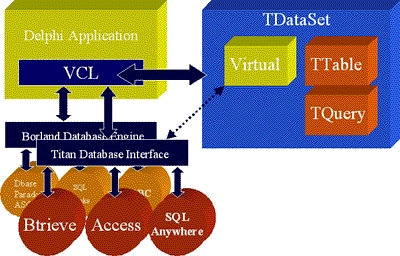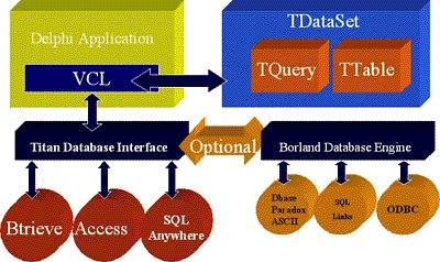 ![]() ![]() Titan Btrieve Developer is a set of tools that provide high-speed performance when working with Pervasive Software's Pervasive.SQL (Btrieve, and Scalable SQL) Engines. Titan achieves the best performance possible by making native calls to the Pervasive.SQL API's. Before Titan was developed, Btrieve tables could only be accessed with Delphi or C++ Builder through the ODBC interface. Opening Btrieve tables in this configuration was painfully slow and simply unacceptable for real world applications. Titan Btrieve eliminates the deficiencies of ODBC. The Titan Btrieve engine is highly optimized to talk directly with the Btrieve Microkernel and Scalable SQL API's, allowing high-speed access to Btrieve tables. All of the Delphi and C++ Builder data-aware controls are fully functional both at design and run-time so that you can see the Btrieve data in your tables as you assemble your application. There is no development environment with the power and ease to develop Btrieve applications like Titan Btrieve and Delphi or C++ Builder. With Titan Btrieve, there is no need for anyone to learn the Btrieve API, or to understand all of the function calls and parameters. Forget about position blocks, key buffers, and extended get operations. They are all there, but managed under the control of Titan. A great benefit of Titan Btrieve is the developer can now use tools that were developed for the BDE. Developers agree, when you combine Titan Btrieve together with Delphi or C++ Builder, there simply is no better, faster way to build Btrieve applications. How Titan Btrieve Works![]() In Delphi 1.0, 2.0, and C++ Builder 1.0, Titan replaces the Borland Database Engine (BDE) interface such that the TQuery, TTable, and other database related components connect directly to Titan, rather than the BDE. This architecture is shown in the picture above. This allows Titan to be installed transparently, maintaining compatibility with all data-aware components like grids, edit boxes, report writers, etc. This seamless architecture is the real power of Titan. ![]() In Delphi 3.0, 4.0, and C++ Builder 3.0 and 4.0, Borland changed the architecture slightly, allowing the use of "Virtual Datasets" as shown above. This makes it easier to install Titan into these development tools. With these Borland tools, Titan provides a complete set of database interface components identical to the Borland ones, except that they talk directly to the Pervasive.SQL API's. More detail is found below on how Titan works with Delphi 3.0, 4.0, and C++ Builder 3.0, and 4.0. Features, Delphi Support, C++ Builder Support and Specifications Titan works with both 16-bit and 32-bit versions of Delphi. Search HALLoGRAM || Request More Information CALL TOLL FREE 1-866-340-3404 |